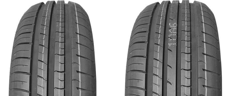 Nyári személy gumiabroncsok aszimmetrikus mintázattal - a külső részen található nagy vállblokkok javítják a kezelhetőséget száraz felületen, a belső rész ívelt keresztirányú barázdái pedig felgyorsítják a víz eltávolítását az érintkezési helyről, növelve a biztonságot esős időben. A gumiabroncsokat a zajszint csökkentésére és a tartósság növelésére is módosították.